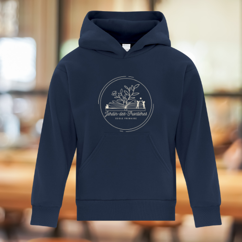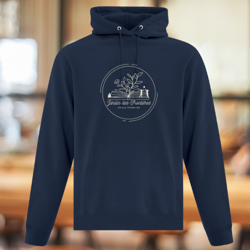 Affichez fièrement vos couleurs avec ce molleton doux à capuchon conçu spécialement pour l’école du Jardin-des-Frontières !