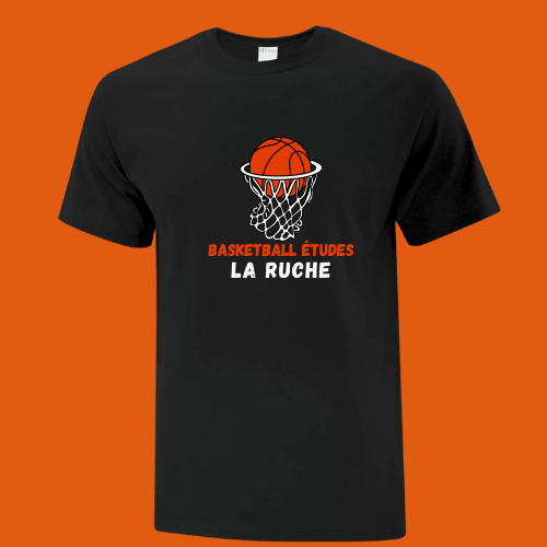 BER01 - T-shirt noir à manche courte en coton BASKET-ÉTUDES